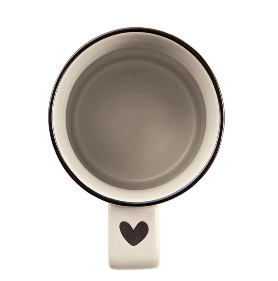 Whether you're drinking your morning coffee, evening tea, or something in between - this hand crafted mug features a subtle de-bossed design to inspire your day! Beautifully neutral ceramic, in a shade of taupe with an unusual squared handle with a heart to finish.